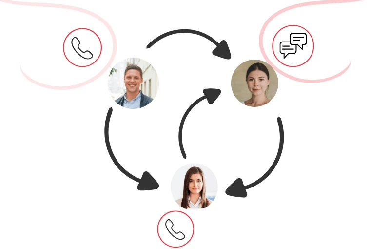 Nuestro conmutador telefónico gestiona la comunicación interna y externa a través de chat, llamadas o vídeo. Tus clientes podrán contactar contigo por Whatsapp, a través de un número de teléfono o mediante un botón de vídeo en tu web. Tu equipo también podrá comunicarse entre sí por chat, llamadas o vídeo a través de cualquier dispositivo y desde cualquier lugar.